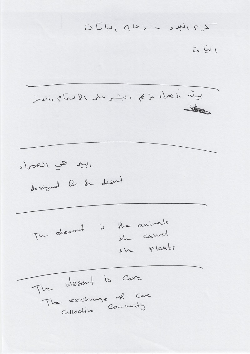 Drawing insights from historical records, cultural narratives, and the constructed environment, Aseel AlYacoub invited workshop participants to redefine preconceived notions about the desert. The workshop's primary aim was to introduce novel or often overlooked terminologies, while laying the groundwork for the inception of an archive.
