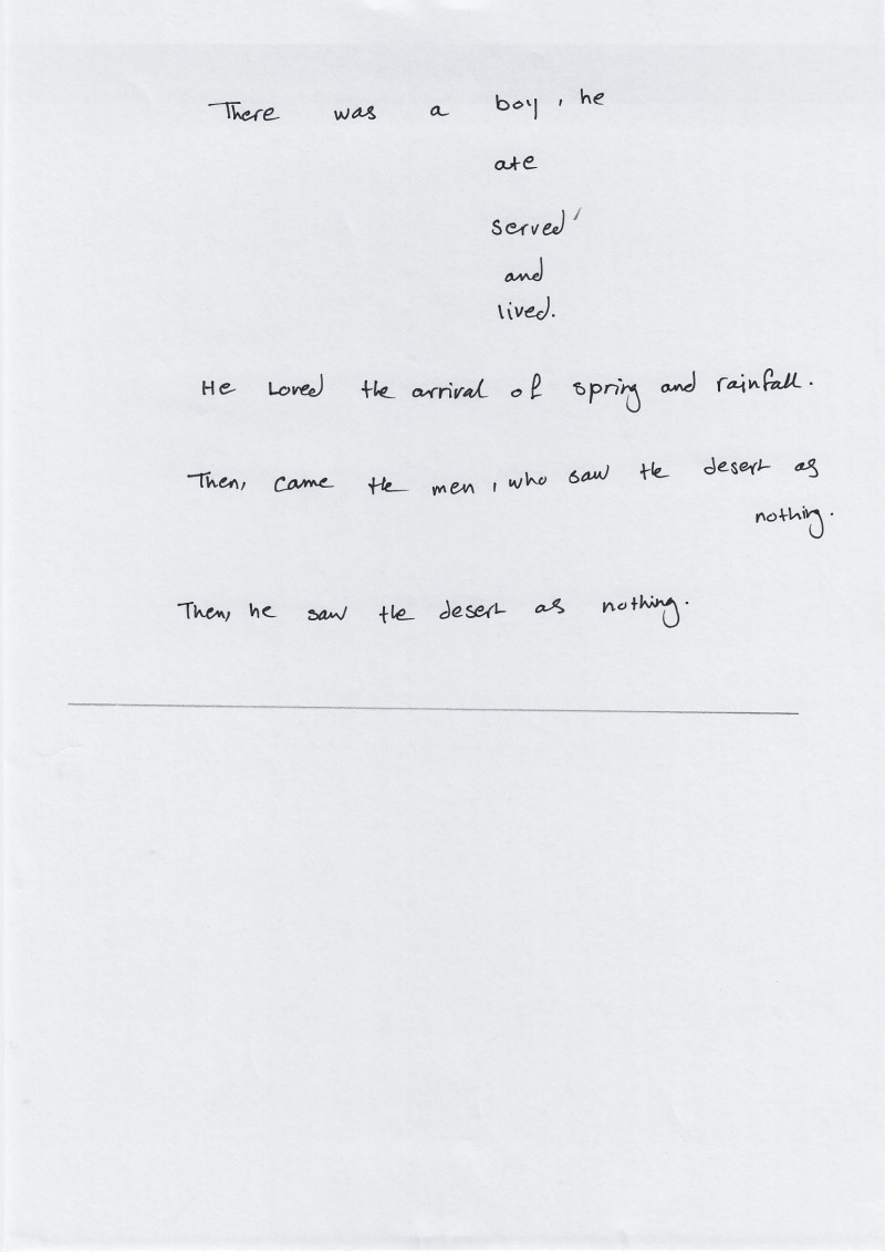 The following scans were collected by the artist at the end of the workshop. In these hand-written notes, the participants developed new connections and interpretations about the desert, thinking through the desert as Method.