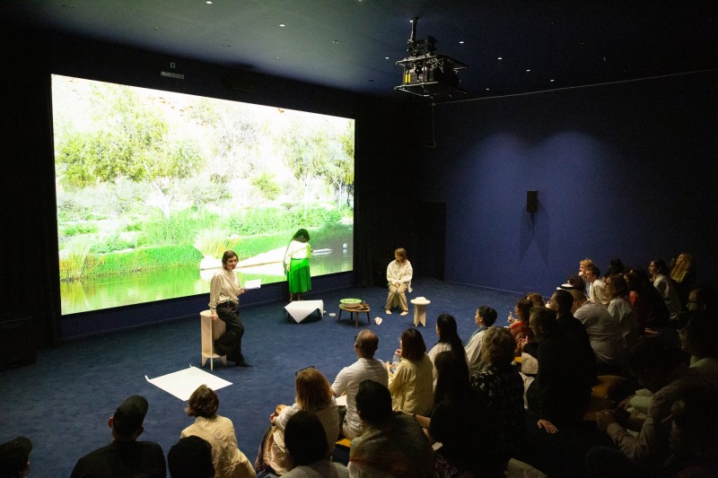 Rooted in feminine insight, in collective processes, in the sensorial, and in entanglement with the natural world, stories are revisited and revised, brought together in a new storytelling event that is held by the alluring film footage shot on location in Riyadh by Abboud’s long-time collaborator Issa Freij.