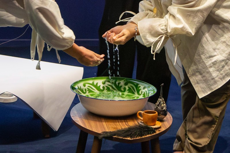The resulting performance is comprised of readings from folk tales, lived experience, imagination, and improvisation, as well as water exchanges and audience participation.