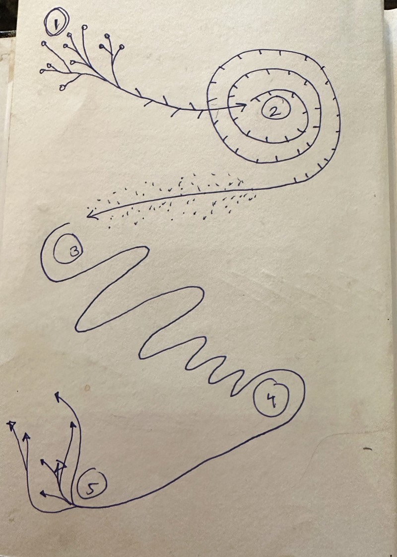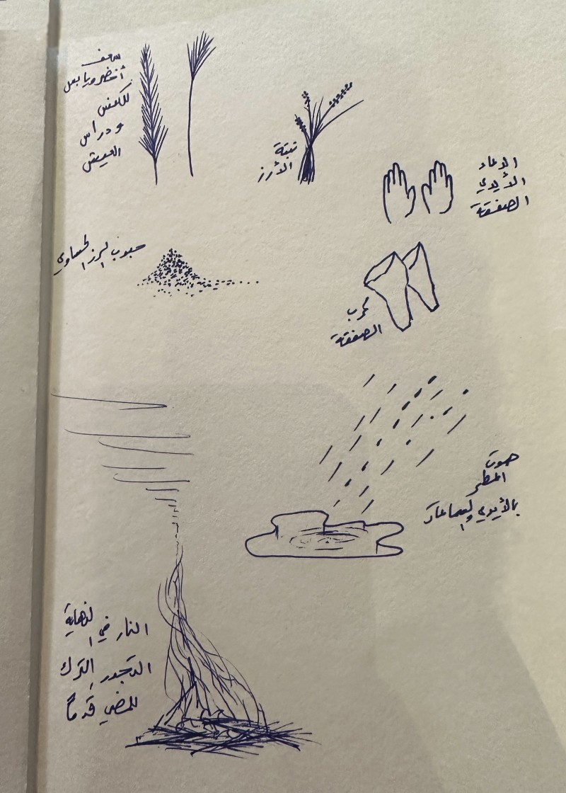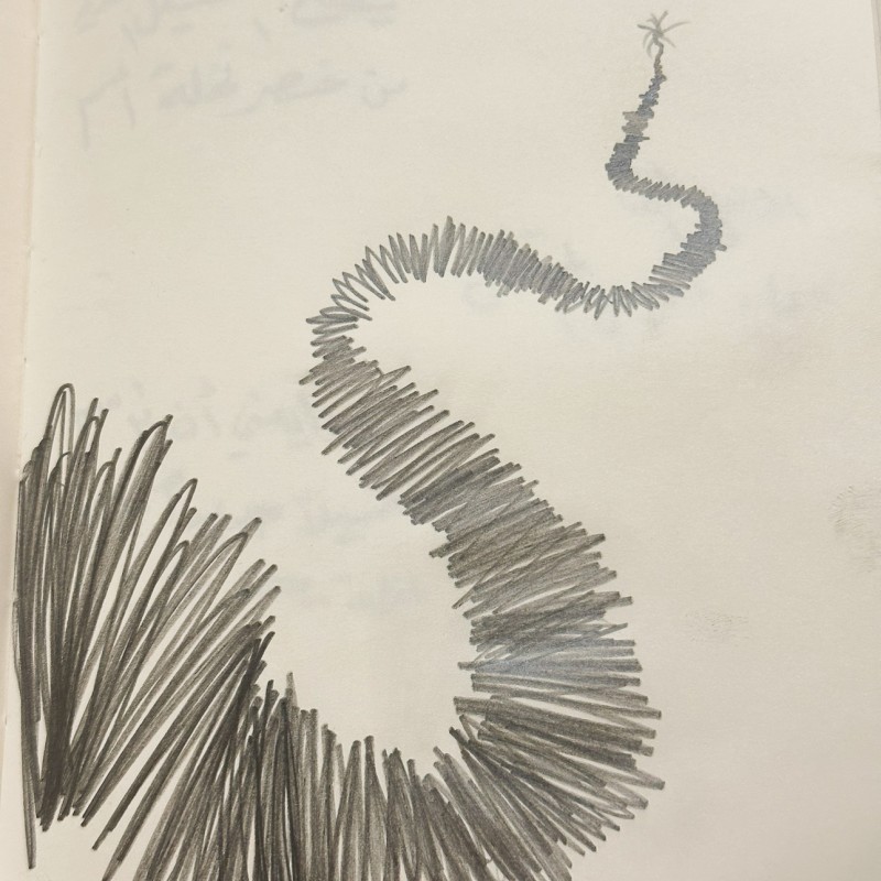 Mohammad AlFaraj shares pencil sketches, ephemeral poems, and handwritten notes from the making of The Whispers of Today Are Heard in the Garden of Tomorrow, a newly commissioned work showing outdoors at the JAX District as part of Diriyah Contemporary Art Biennale 2024.