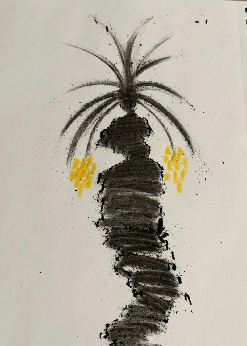 Mohammad AlFaraj is an artist, film director, storyteller, and writer, who graduated with a BA in mechanical engineering from King Fahd University of Petroleum and Minerals (KFUPM) in Dhahran in 2017. After his studies, he began turning his attention to the natural world and making art steeped in metaphor, drawing on agricultural practices, oral histories, and legends recorded from the elders of his community. Fantastical creatures as well as the fauna and flora of his environment appear in his work. By using local and natural materials, such as soil, palm fronds, and date extracts, AlFaraj conveys a deep- rooted connection to the oasis of Al Ahsa, where he was born and raised and where much of his exploration began.