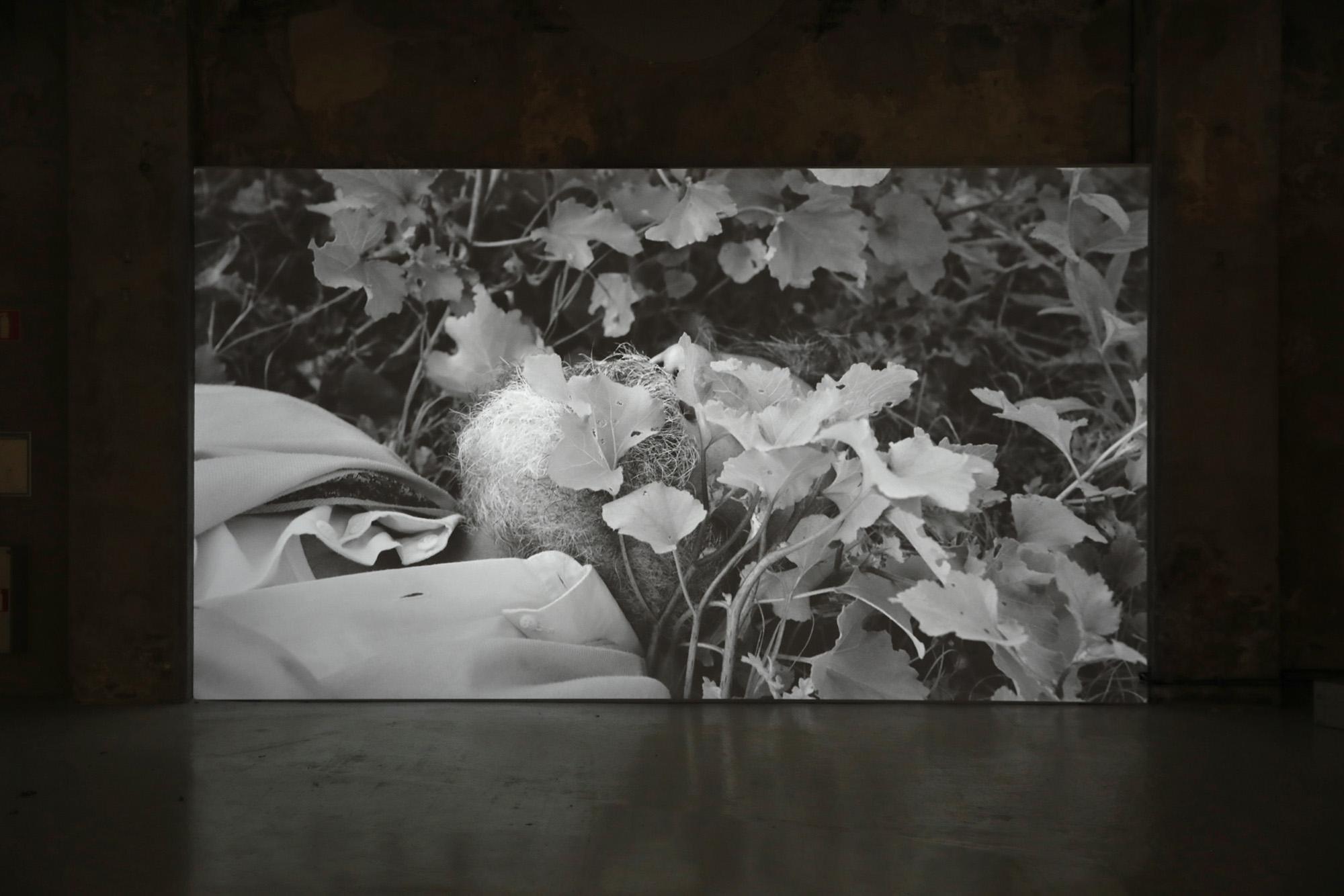 MW: In recent years, I have loved doing shows in our part of the world rather than going to the West and showing the work and explaining exactly what you said about ‘riyaz.’ Where you don’t have to translate anything and everyone understands within the moment what it means. And I think there is something very special about that. And from the last five years I started actually looking for only Bangla titles for my work, because I realized that there is so much literature that is actually coded or blended with how I think or how we think. To go back to this whole exhibition, it is all related, each work is actually referring to a new work. So when I started designing the exhibition, the idea was to extend these four characters that you see in the film. In the space, you can see Osman Ali again, and that’s how the work was actually initially formed. I thought about this character who is obsessed with smell. And when I say smell I don’t mean perfume, but smell in every possible sense, smell of blood, smell of sweat, smell of paper, smell of everything. Especially in Old Dhaka, if somebody were to blindfold you and move you from one place to the other, you can easily tell which area you are in because there is so much presence of smell. And I started to think about how I can really talk about smell without showing smell. And how someone can be obsessed with smell in 2022. And I started researching and especially looking at the Mughal era, which opened up a completely different episteme and new ways of looking at the world, at least for me. So here, you will see a lot of spaces, a lot of architecture, a lot of things which are not definite, but it still gives you a reference to certain forms of smell. Which links with the film as well.